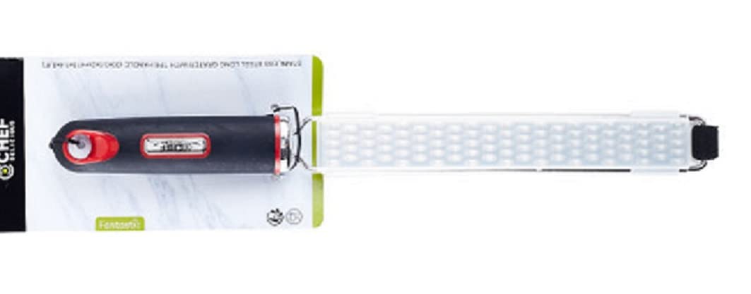 Long grater to zest fruits or grate cheese/garlic. It has a safety cover. Perfect for preparing your gourmet meals.