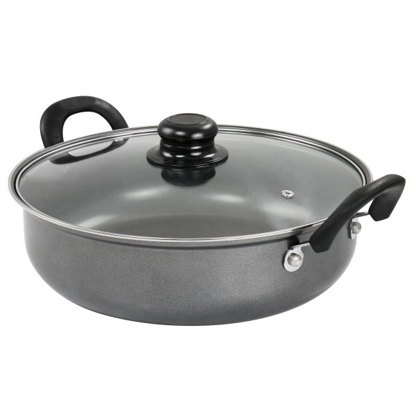 Gather your ingredients and start the burners with this Gibson Home Delhi 8 Inch Round Nonstick Carbon Steel Frying Pan. Constructed from durable and lightweight carbon steel, this pan heats up quickly and evenly. The nonstick coating means easy food release so there’s more food on your plate and less left burnt onto the pan. A bakelite handle stays cool while you’re cooking and a hanging handle makes for easy storage when you’re done. To ensure this pan stays in prime condition, hand wash only. Item Dimensions: 14.00″ x 8.00″ x 1.30″ Item Weight: 0.75lbs
